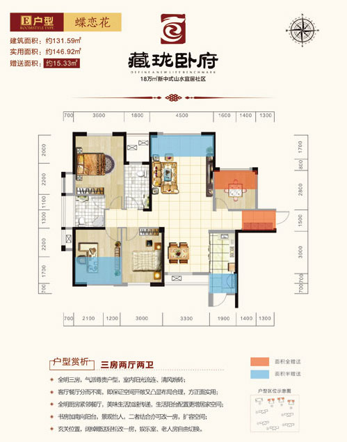 建面约 : 131.59平米