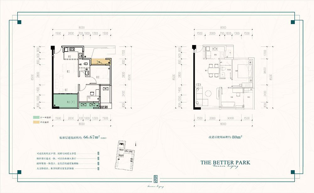 建面约 : 66.67平米