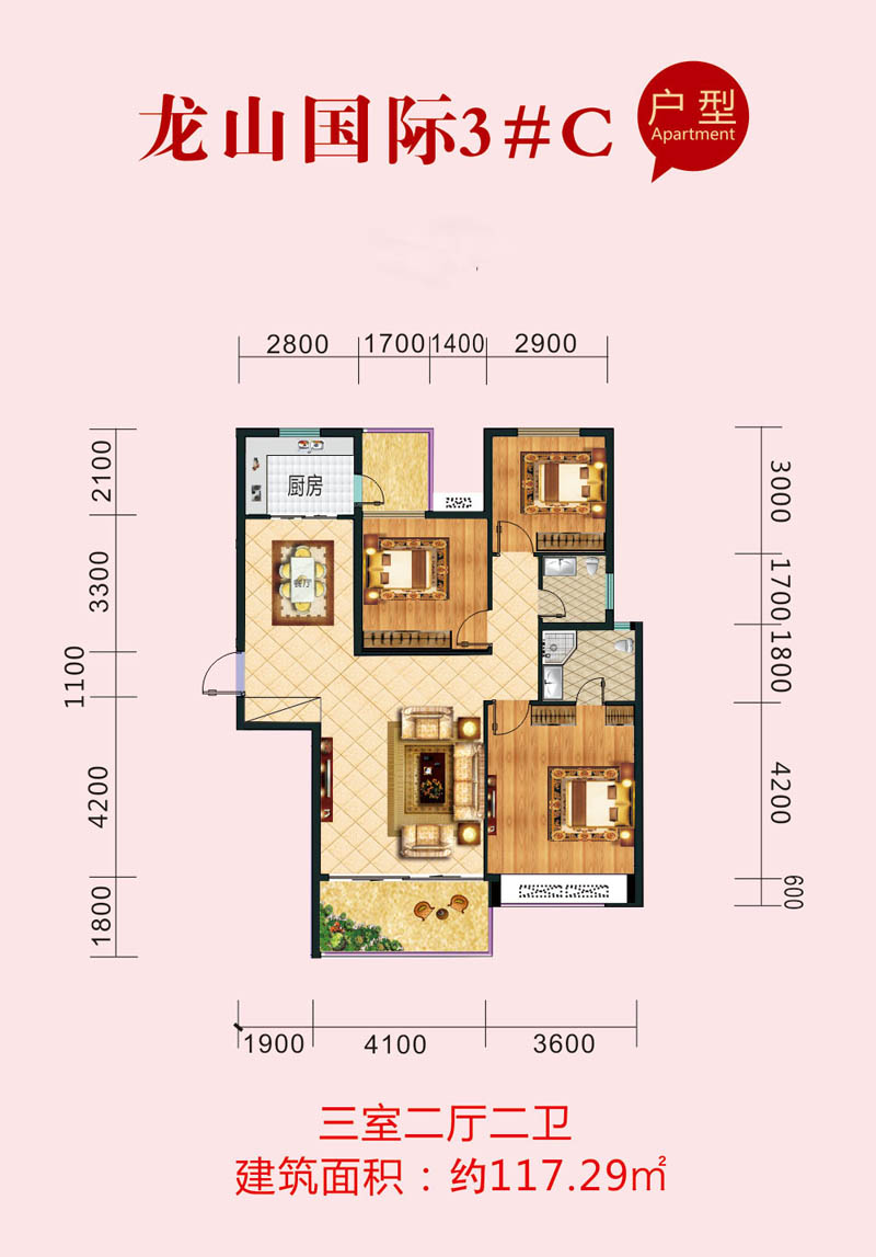 建面约 : 117.29平米