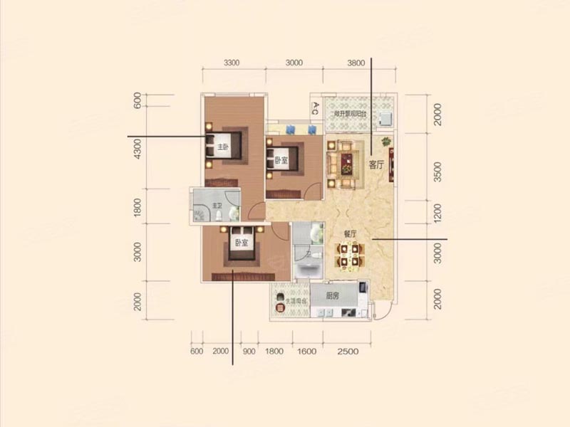 3室 2厅 1卫