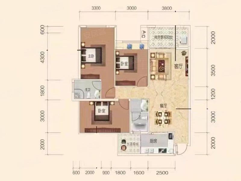 3室 2厅 1卫