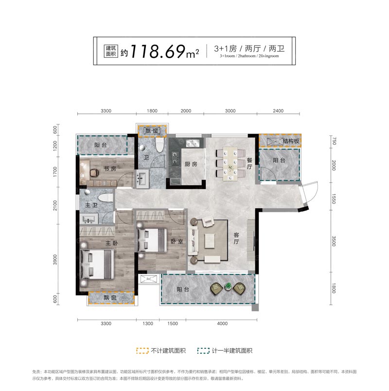 建面约 : 118.69平米