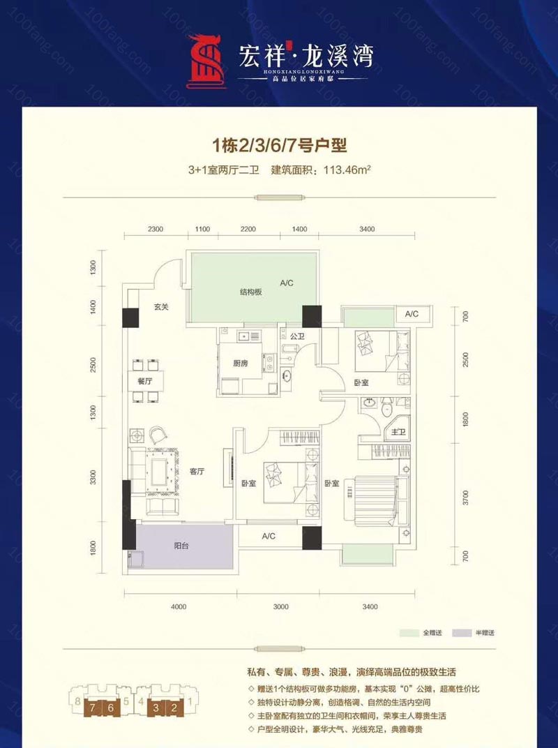 建面约 : 113.50平米