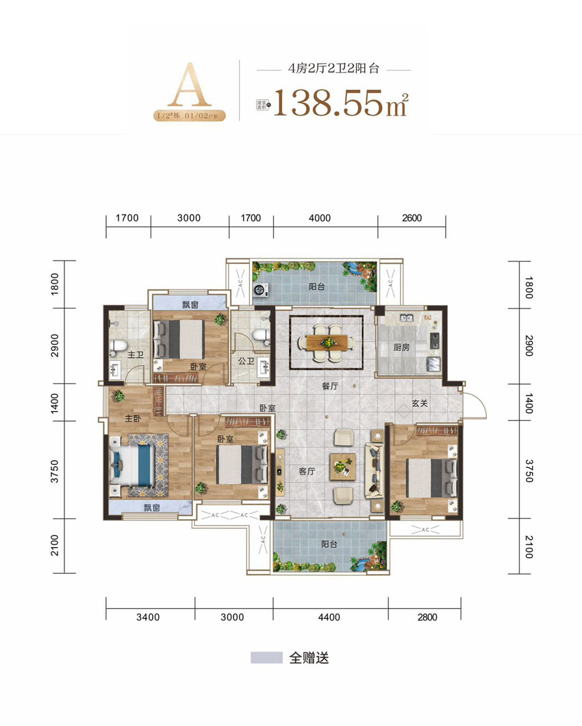 建面约 : 138.55平米