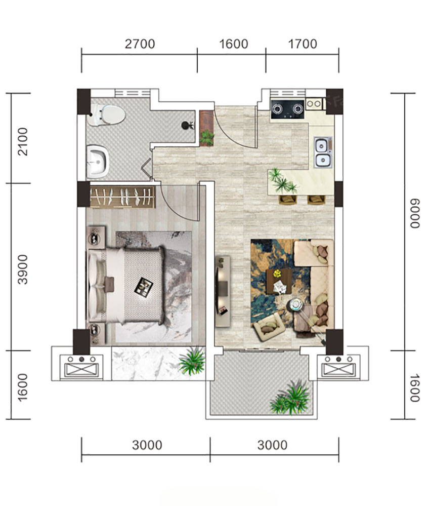 1室1厅1厨1卫