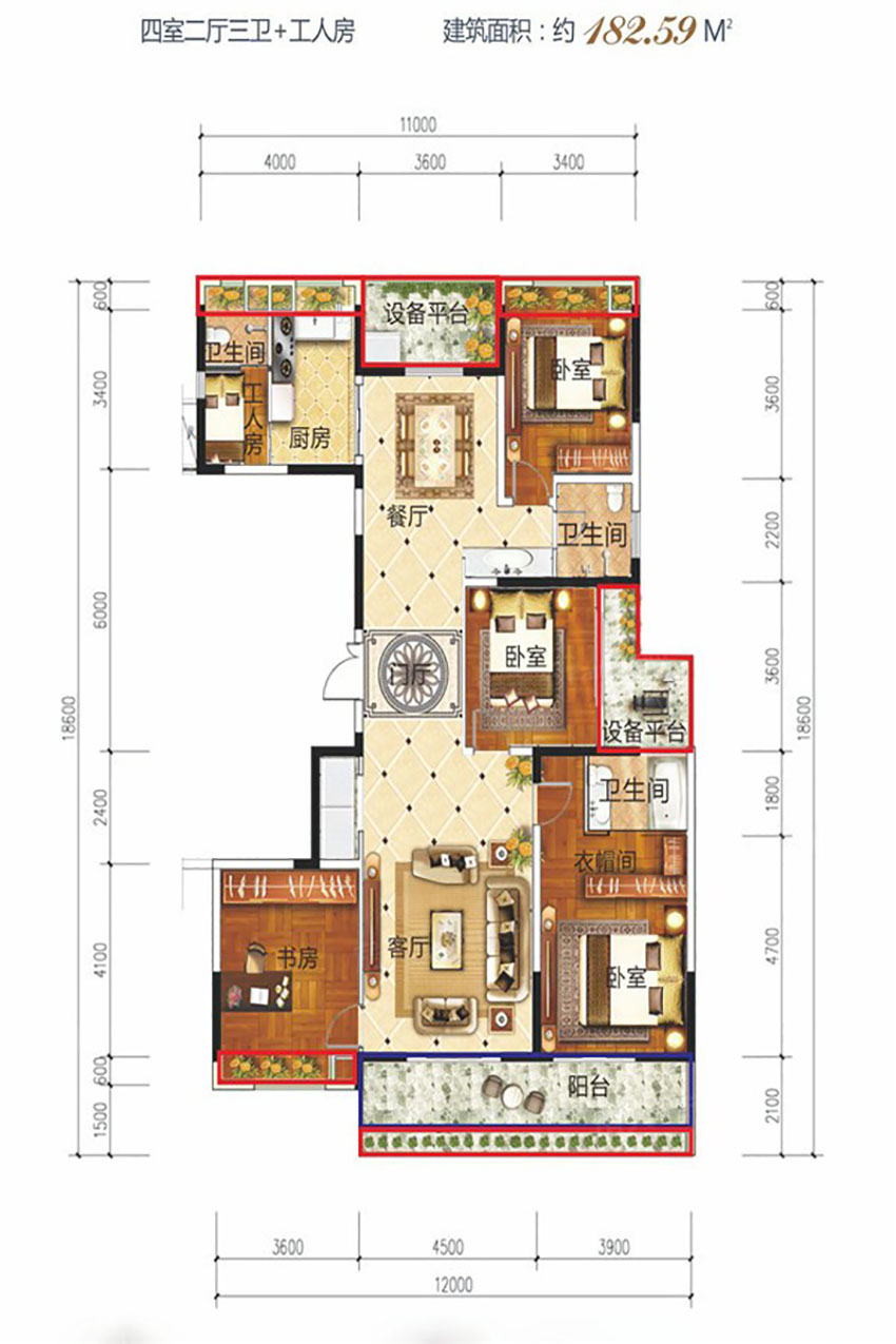 建面约182.59平米