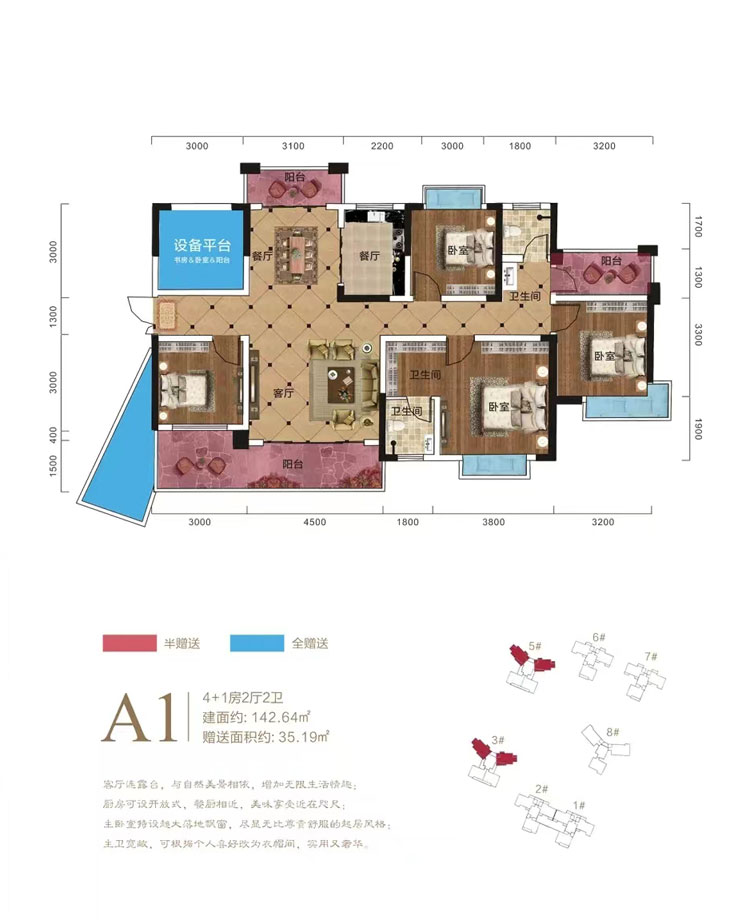 建面约 : 142.64平米