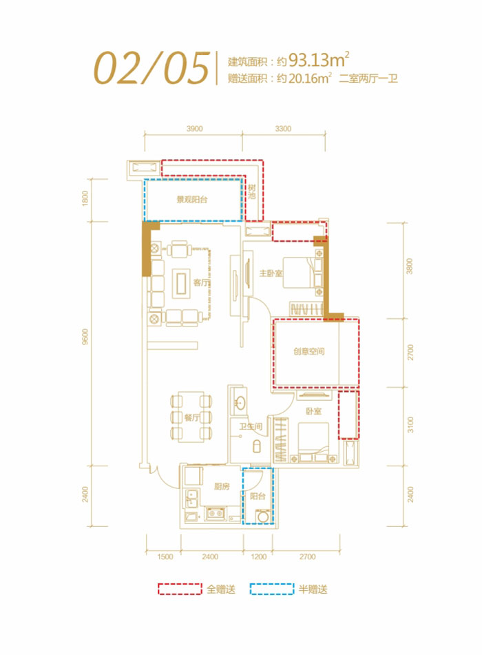 建面约 : 93.13平米