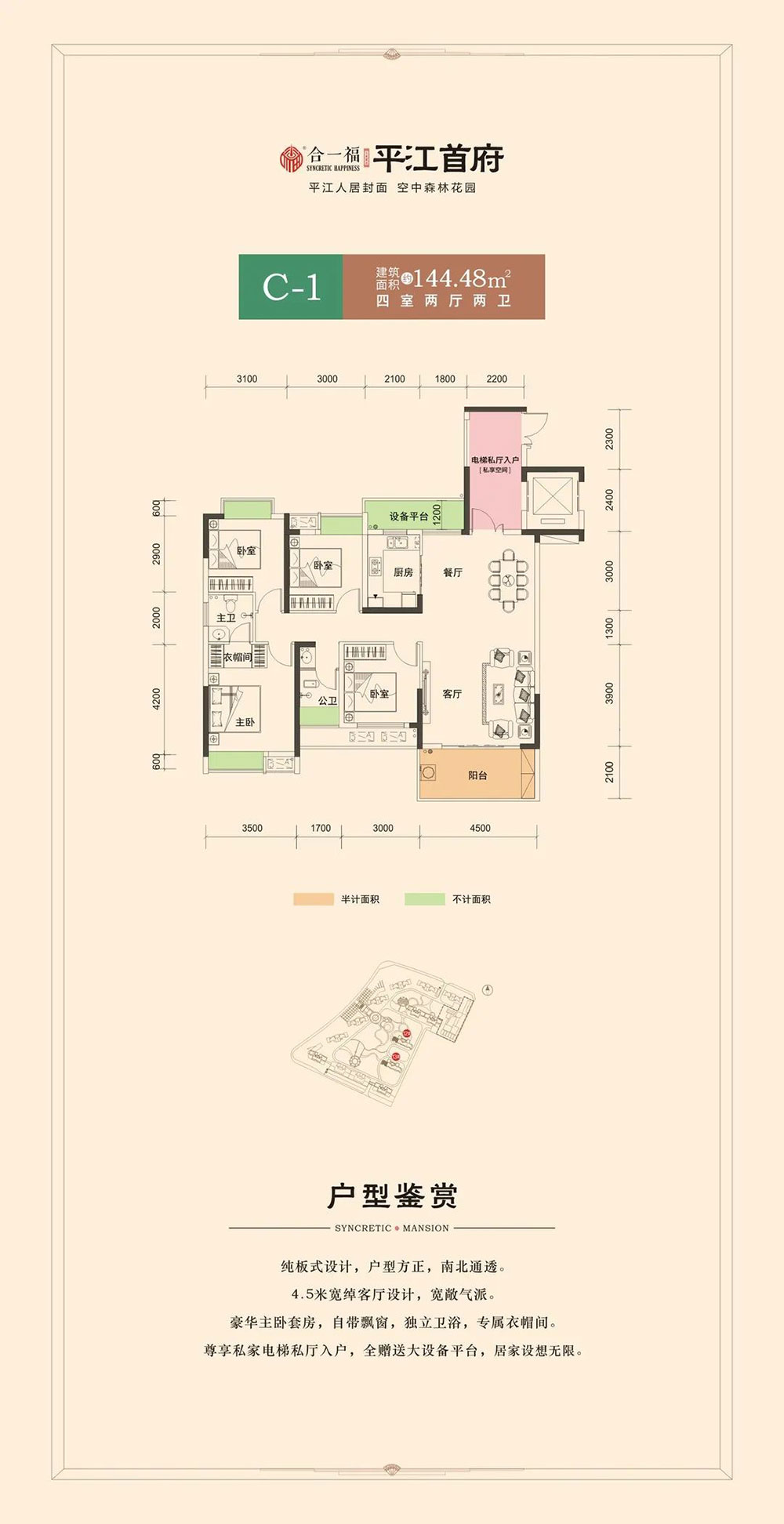 建面约 : 144.48平米