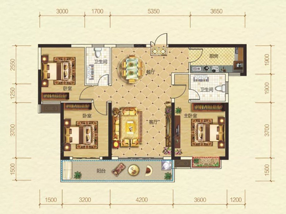 3室2厅1厨2卫