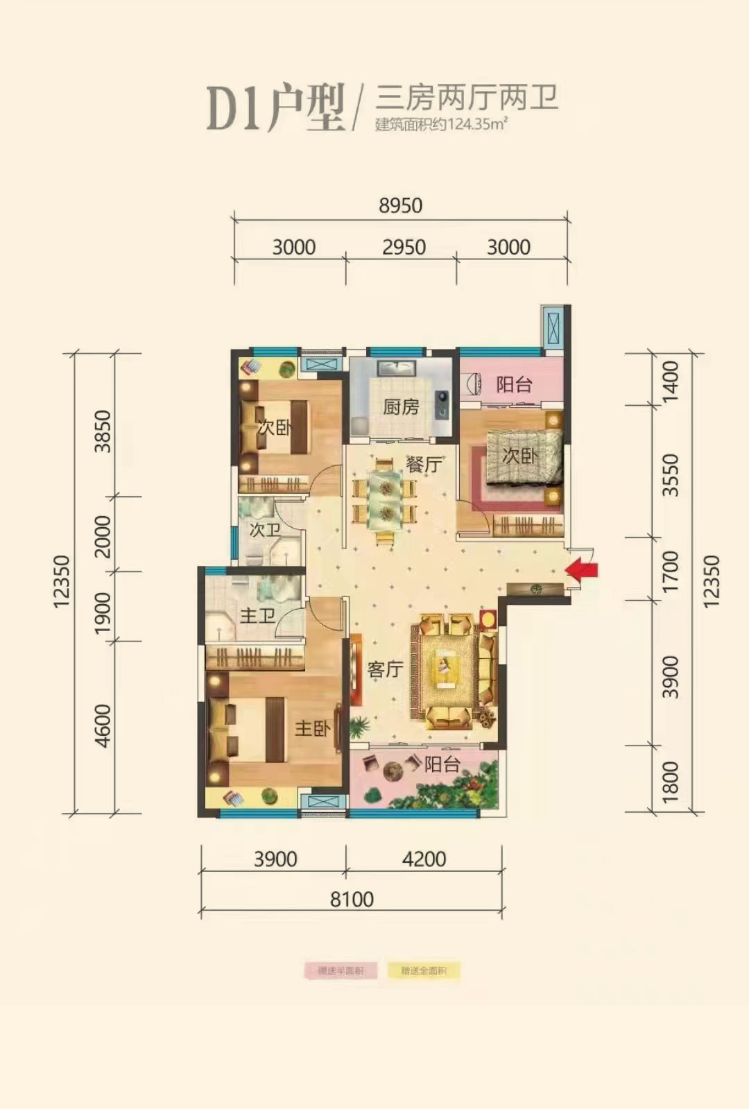 建面约 : 124.35平米