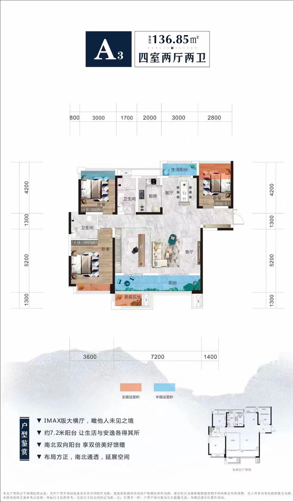 建面约 : 136.85平米