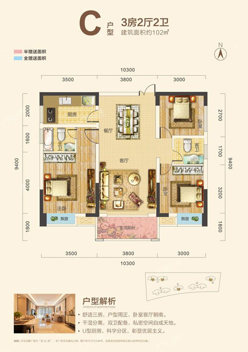 建面约 : 102.00平米
