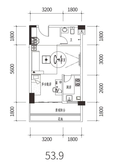 建面约53.90平米