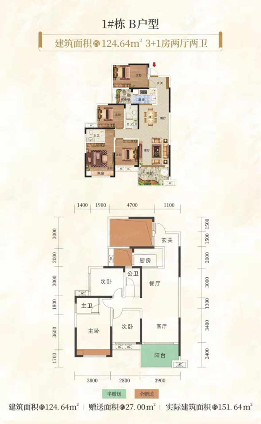 建面约 : 124.64平米