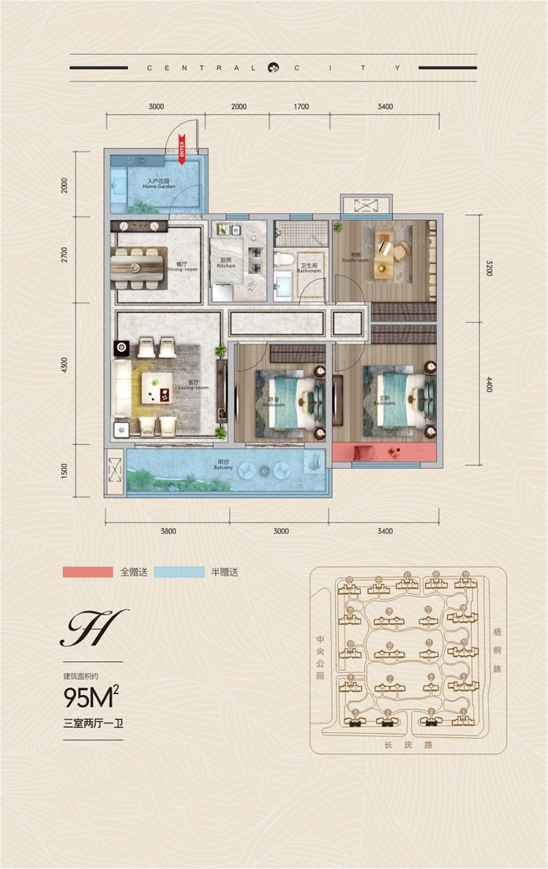 建面约 : 95.00平米